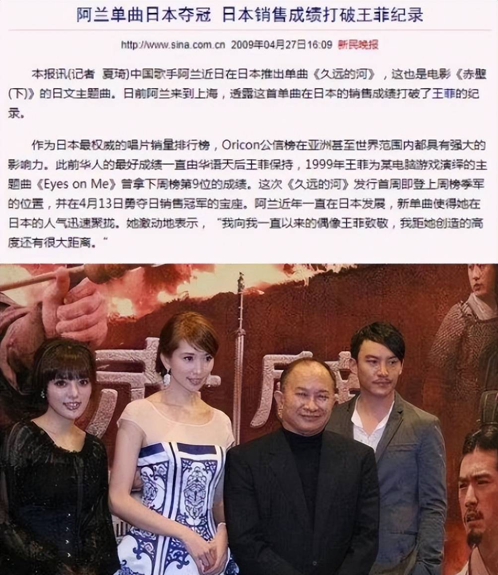 也正是因为这一次的“开门红”,她就受邀参与了电影赤壁(上)主题曲的演唱,令所有人没想到的是,当这部电影上映之后,不仅迎来了观众的一致好评,而她所演唱的主题曲更是成为了日、周销售的冠军。