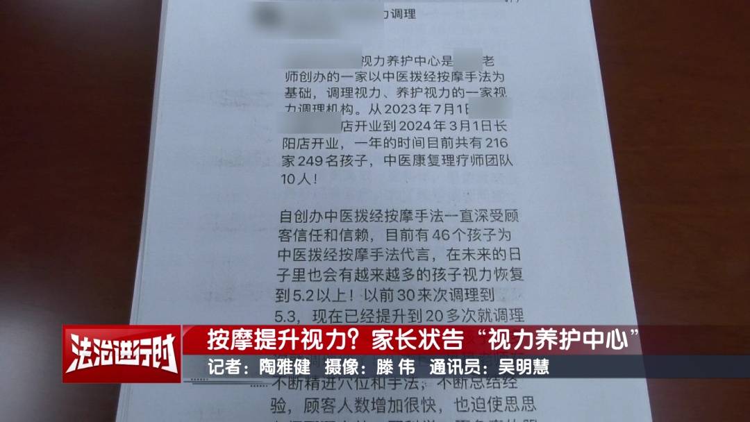 官方网站当孩子检查出近视,一些家长因为不愿让孩子过早佩戴眼镜,往往会寻求所谓的“自然疗法”、“中医调理”。北京的李女士就选择了这样一家号称能通过按摩提升视力的养护中心,然而半年下来,花了不少钱,孩子的视力却急剧下降,最终双方对簿公堂。这究竟是一场怎样的纠纷?
