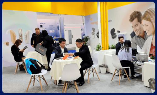 各国参展人士慕名而来,被欧仕达助听器新品外观吸引,向现场工作人员咨询了解产品功能与特点,纷纷表示想要现场试听,亲身体验音质效果。